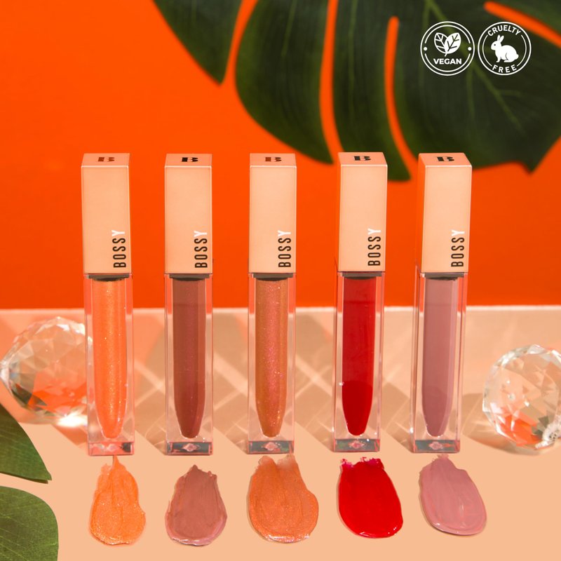 - BOSSY GLOSS: Bossy Gloss is a "must have" in your daily makeup bag. This plumping lip care product will give your lips comfort, shine, and maximum volume! Available in 5 different colors with EMPOWERED giving a shimmery mid-tone peach look, the perfect color for a change maker!