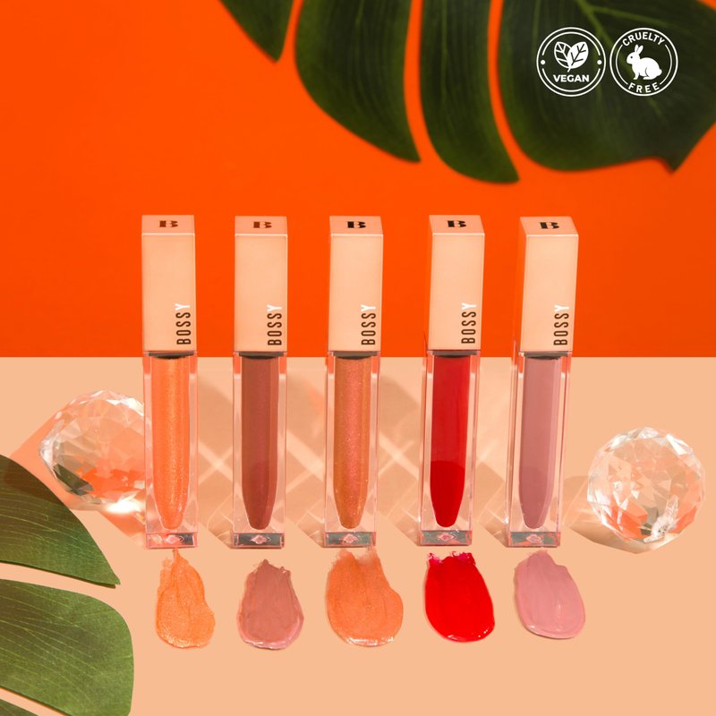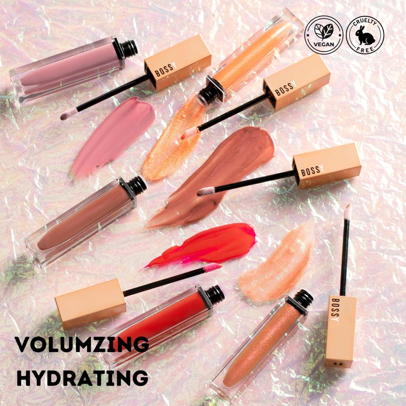 - BOSSY GLOSS: Bossy Gloss is a "must have" in your daily makeup bag. This plumping lip care product will give your lips comfort, shine, and maximum volume! Available in 5 different colors with FEISTY giving a deep-tone, bold rouge look, the perfect color for the go-getter.