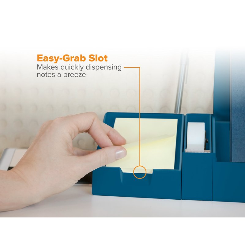 Bostitch Office Sticky Note Holder + Business Card Stand, Includes Pen Holders, Blue