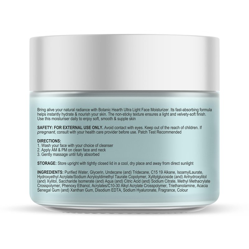 - Adds Hydration Boost: Botanic Hearth Ultra Light oil free Face Moisturizer for women and men helps add a powerful boost of hydration to even out skin tone and make skin firmer