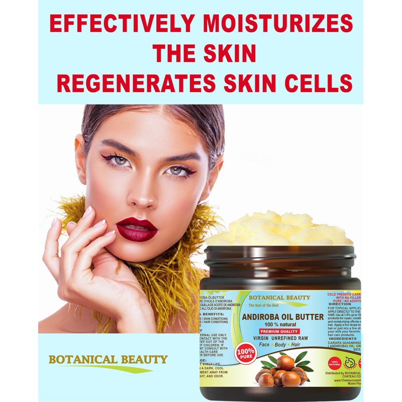 Botanical Beauty ANDIROBA OIL BUTTER RAW Pure Natural VIRGIN UNREFINED Cold-Pressed 4 Fl oz 120 ml for Face, Skin, Body, Hair, Lip, Nails. Rich in Vitamin E, Vitamin C