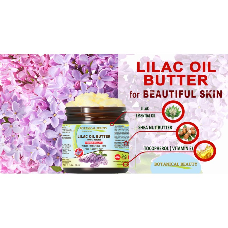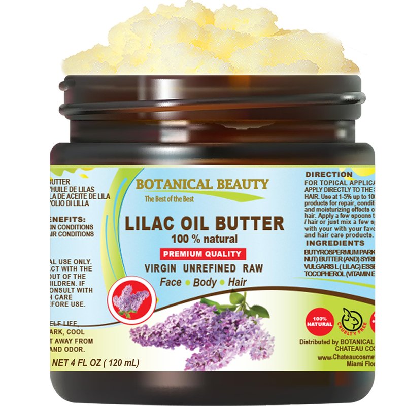 - Botanical Beauty LILAC OIL BUTTER is Lilac Essential Oil ( Syringia vulgaris L.) infusion in Shea Nut Butter ( Butyrospermum Parkii) 100% Natural RAW cold-pressed virgin unrefined Butter. Botanical Beauty LILAC OIL BUTTER is the light heavenly aroma of the Lilac flowers.