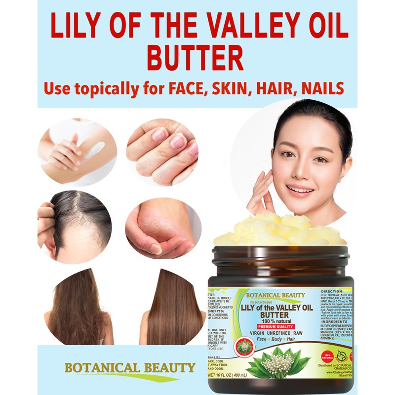 - Botanical Beauty LILY OF THE VALLEY OIL BUTTER is Lily of the Valley Essential Oil (Convallaria majalis L.) infusion in Shea Nut Butter ( Butyrospermum Parkii) 100% Natural RAW cold-pressed virgin unrefined Butter. Botanical Beauty LILY OF THE VALLEY OIL BUTTER is light heavenly aroma of the Lily of the Valley flowers.