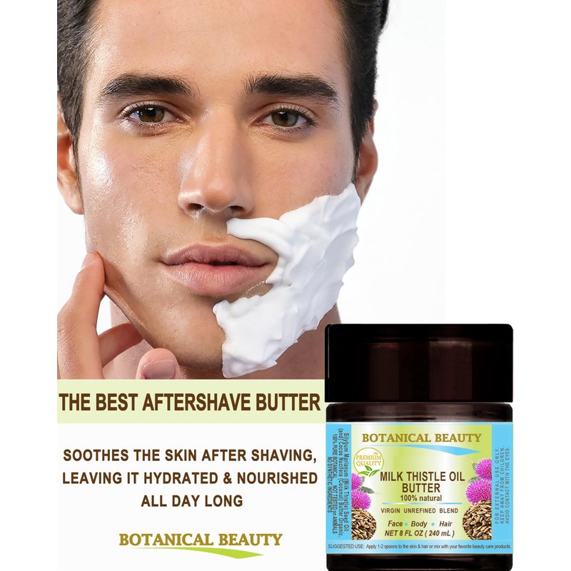 - Botanical Beauty MILK THISTLE SEED OIL BUTTER Silybum marianum is 100% Pure Botanical RAW 100% Natural with no additives. Milk Thistle, also known by many other names such as Marian thistle and Scotch thistle. Used for thousands of years for its moisturizer properties, Milk Thistle is great for the body and skin. MILK THISTLE OIL BUTTER is so rich with Silymarin skin-enriching vitamin E, vitamin B complex and linoleic fatty acids.