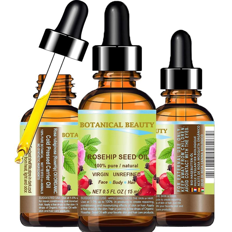 Botanical Beauty ROSEHIP SEED OIL Pure For Face, Skin, Hair and Body. Anti-Aging Moisturizer Facial Oil 0.5 Fl oz 15 ml