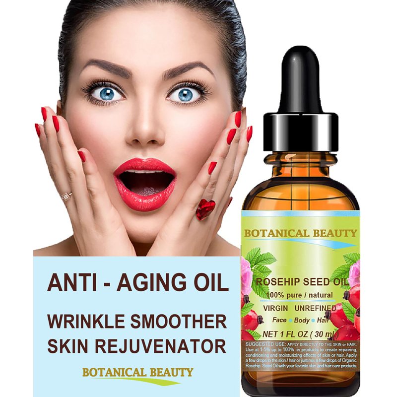 - Botanical Beauty RoseHip Oil used topically for WRINKLES, DRY SKIN, ACNE, PSORIASIS, ECZEMA, DERMATITIS, SUNBURN, STRETCH MARKS, BURNS, CUTS, SCARS, ACNE AND CELLULITE.