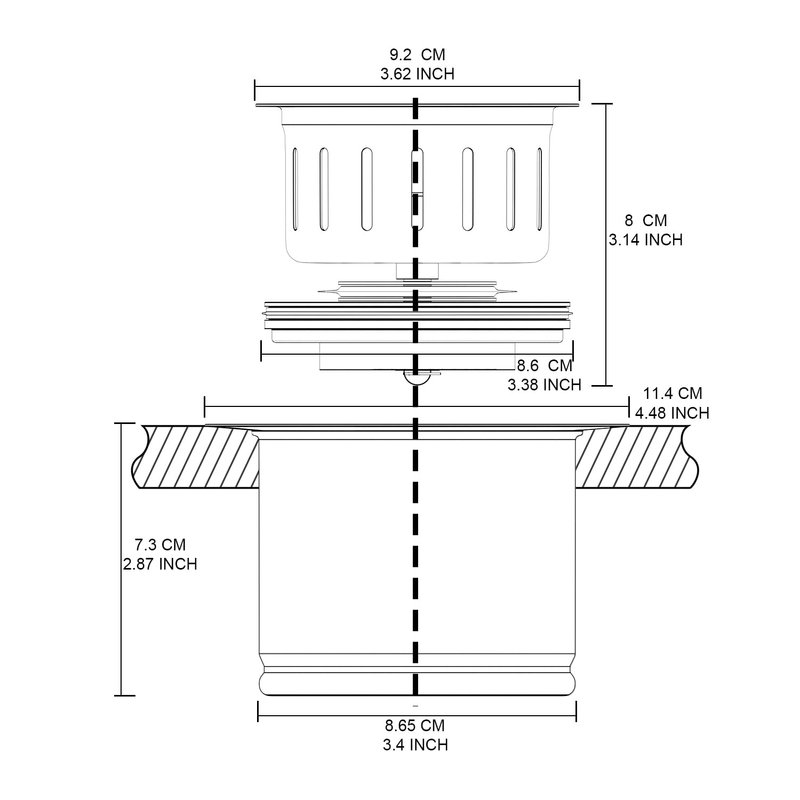 - APPLICABILITY : Extended disposal flange with deep basket strainer fits 3-1/2" US standard sink drain and is perfectly compatible with most US kitchen composite and stainless steel sinks