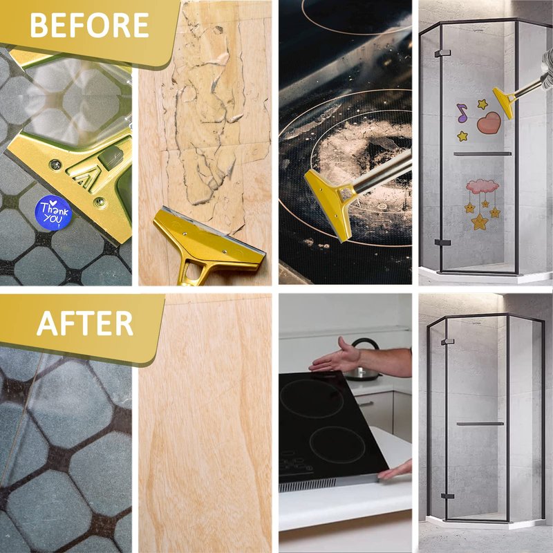 - [DESIGN FEATURES]: The handle of this scraper tool has an excellent grip and makes them comfortable to use for less hand fatigue. The blade is extremely sharp. Scraper tool makes cleaning easy, simple and efficient.Changing blades is easy and convenient.