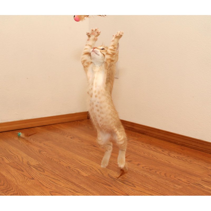 Bouncy tails bring out the wild side. This toy makes it appealing for them to do high jumps and cool swipes with their paws. The movement is usually unpredictable because of the feathers.