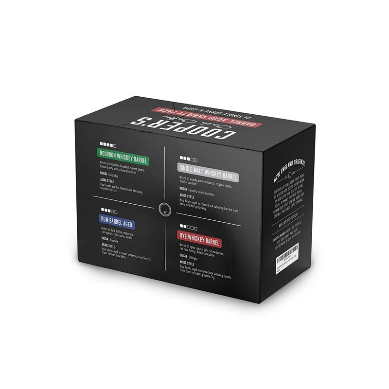 - 24ct Variety Pack Single Serve Coffee Cups: We pair our single origin sourced coffee beans with award winning Kentucky Bourbon, Malt Whiskey, Rye Whiskey and Rum. We then package it in a handsome 24ct Cooper's Single Serve Pods Box Set. One sip and you’ll know you’ve found ‘real’ barrel aged coffee.