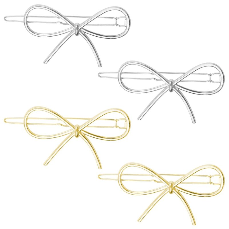 Bow Bobby Pins for Women Girls Gold silver Hair Bow Clips Small Hollow Hair Barrettes for Women Girls Hairpins 4pcs Cute Girls Hair Accessories Blonde Bobby Pins for Fine Thin Hair Bow Clip