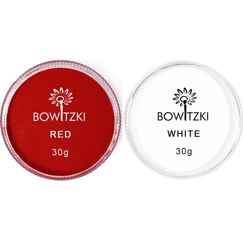 Bowitzki 30g Professional Face Paint Body Paint Water Based Face painting Makeup Safe for Kids and Adults Split Cake Single Color (White+Red)