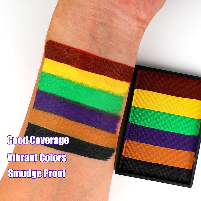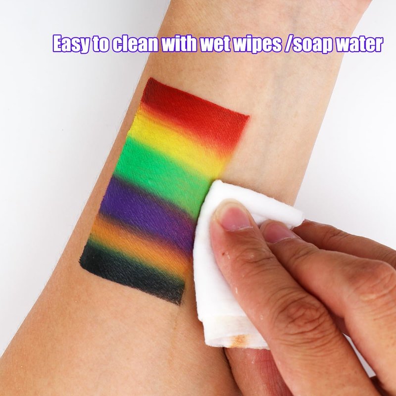 - NON TOXIC,SAFE FOR SENSITIVE SKIN:Bowtizki rainbow face paint is hypoallergenic and Paraben- free,made with non-toxic,skin safe ingredients.As most makeup we highly recommend you to test it on a small area first.