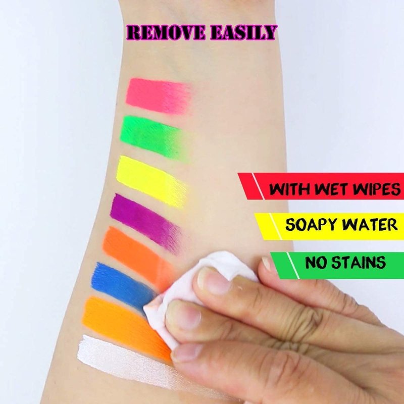 - Simply moisten a brush or sponge, dip into the color and apply for a versatile amount of looks, from fine detailed lines to full-body art. Great for pro-quality face and body painting.