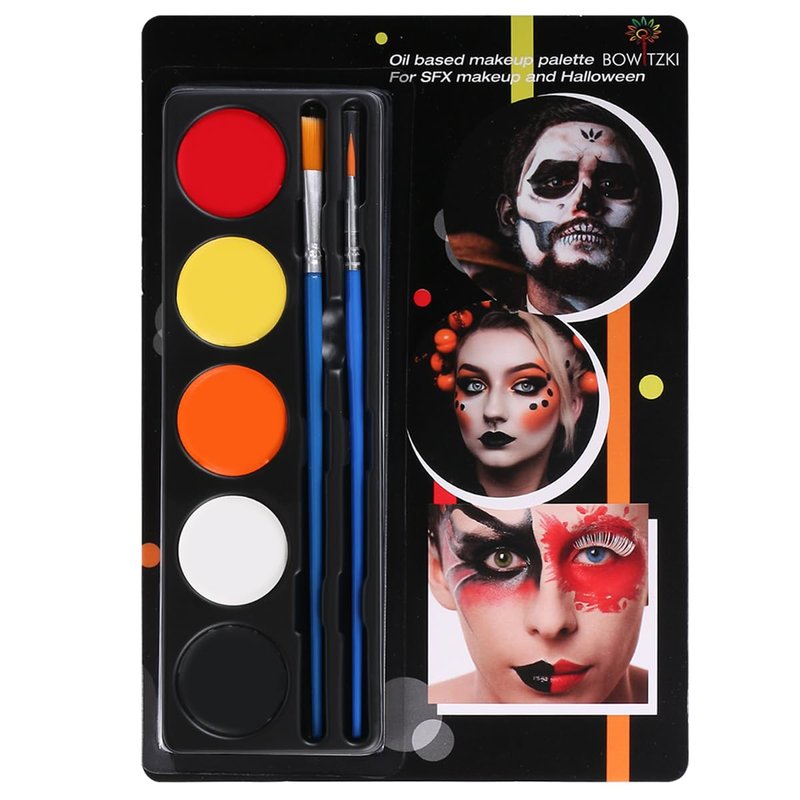 - Bowitzki Halloween Makeup Palette 5 Colors Face Body Paint Oil Based with 2 Brush.