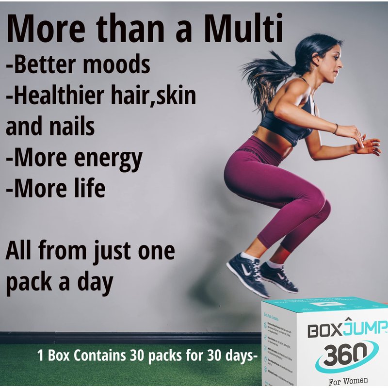 - Easy and Convenient! Each serving of Box Jump Nutrition's womens daily multivitamins is its own individually wrapped sachet that you can throw in your gym bag, work bag, or just leave it in the box on your kitchen counter. The perfect once a day multi vitamin for women with 30+ vitamins and minerals at 100%+ of the Daily Value that you can take on the go!