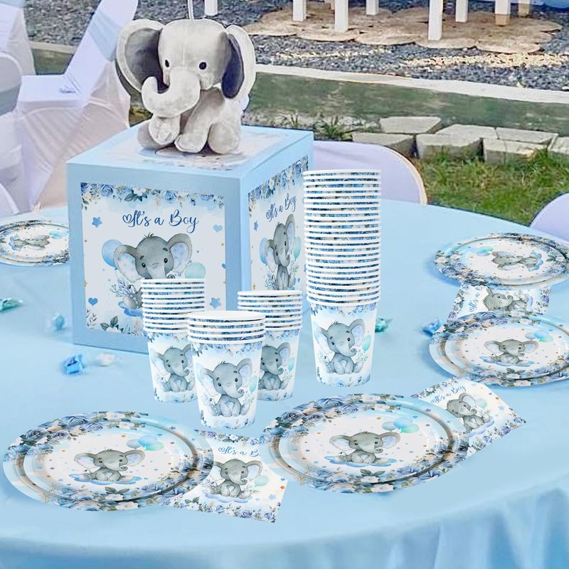 - Blue Floral Elephant Plates Set - Blue color for boy or girl, printed with prominent elephant. This blue elephant disposable dinnerware kit are perfect for any themed party whether it's for boys or girls. Impress your guests with this set of elephant party supplies set