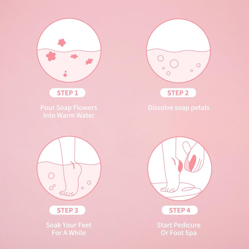 【Specially Designed for Foot Soak】 Use a foot soak before pedicure. Only a bottle cap capacity soap sheet is needed to clean and relieve dry skin, fully moisturize your feet, and help soften calluses. After soaking for a few minutes, you can begin your pedicure journey. 【Cute Design】Soap sheets come in 4 different colors and shapes, with rich fragrance, allowing you to feel the joy of life while relieving fatigue in the pedicure foot spa. 【Portable Foot Soap】One can of flower soap sheets is 100g, which is very suitable for daily life, travel, camping and pedicure parties. You can clean your hands and soak your feet at any time. Keep your life clean and scented. 【Multiple Uses】 Not only used to pedicure soak feet to soften calluses and moisturize the skin, but also can be used for daily cleaning. Just take a few tablets when washing your hands and enjoy clean, healthy hands. 【Unique Gift】The foot soak soaps are perfect pedicure supply as pedi gift for any lady who likes to do pedicure or want beautiful smooth feet. We will always do our best to create a wonderful experience for you.
