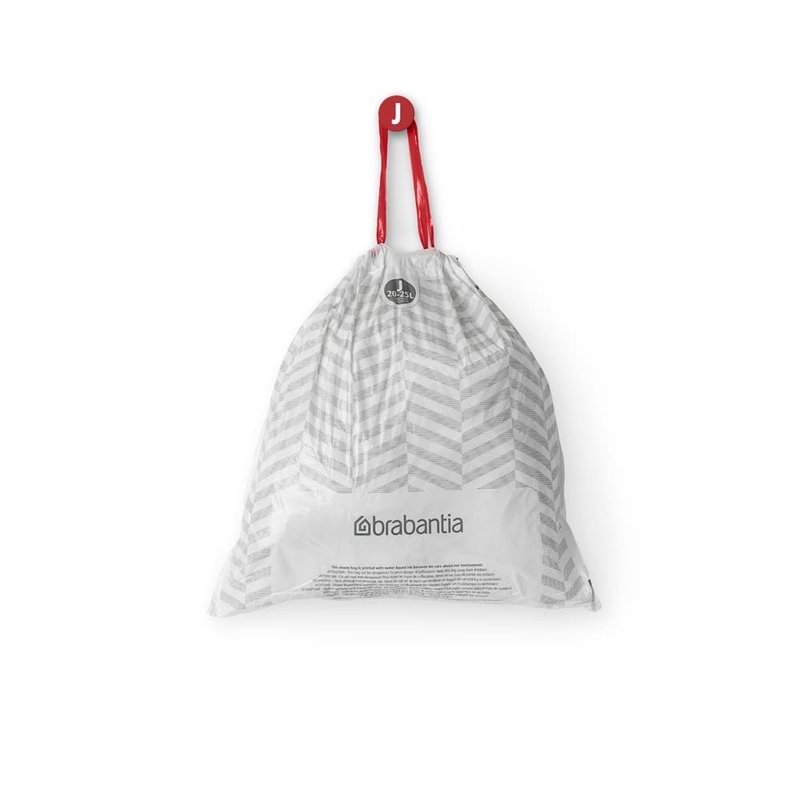 Brabantia PerfectFit Trash Bags (Size J/5.3-6.6 Gal) Thick Plastic Trash Can Liners with Drawstring Handles (40 Bags)