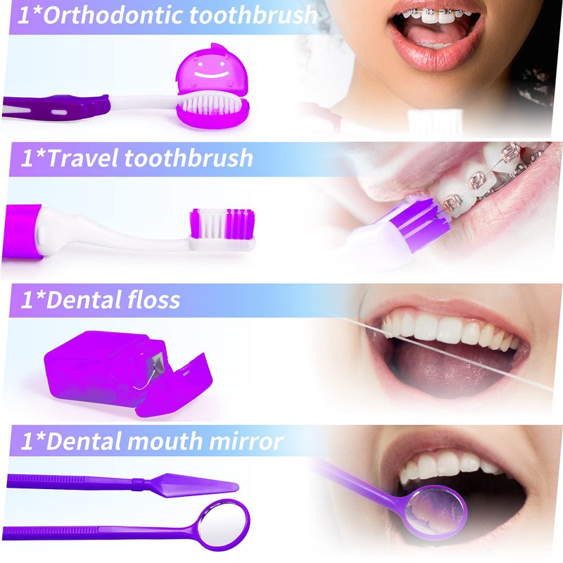 - ★ Package List: 1*Orthodontic toothbrush, 1*Travel toothbrush, 1*dental floss, 1*dental mouth mirror, 1*braces wax, 1*Interdental brush,1* hourglass timer,1*dental floss threaders.