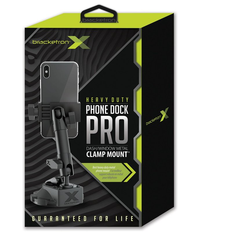 Bracketron HD Phone Dock PRO Dash and Window Metal Clamp Mount, Phone Holder for Car, Universal Phone Mount for Phones up to 3.5 Inches Wide