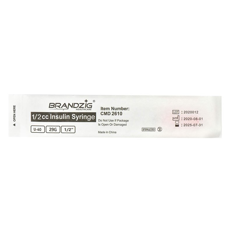Brandzig U-40 Pet Insulin Syringes 29G 1/2cc, 1/2" 100-Pack