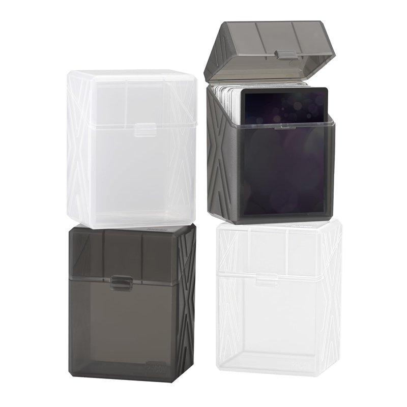 BRAPPO 4 Pack Card Deck Boxes for 150+ Standard Size Card Storage Box, Clear Commander Card Deck Case Compatible MTG, Trading Cards, Sport Cards, with 4 Dividers.(No Cards) (2 Black+2 Clear)