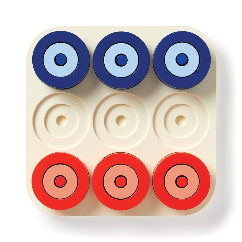 - How to Play: Be the first player to use their pieces to complete a line of three like-sized circles–or form a single colored 'bullseye' as a sneaky fourth way to win. Suitable for 2 players so take turns.