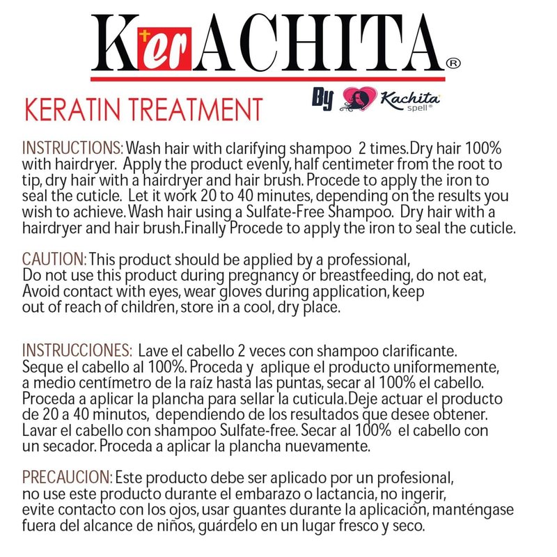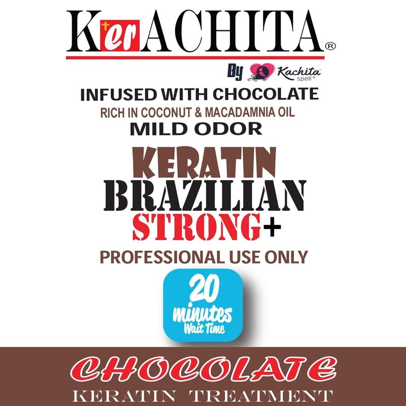 Brazilian Keratin Kerachita infused with Chocolate 32 fl oz works on all types of hair and it is made entirely in the United. This Keratin with formaldehyde has the best market efficiency. Our Brazilian Keratin is a NEW and revolutionary hair re-constructor. Brazilian Keratin Kachita Spell infused with Chocolate 32 is a volume reducing treatment that eliminates kinky and frizzy hair textures, leaving hair straight, healthy and shinny for up to 6 months depending on the hair type. Our Brazilian Keratin completely repairs hair, coating hair with keratin protein, rejuvenating all hair structure and gives it a shiny and flexible look. This Keratin, together with a highly concentrated protein compound, has a unique and especial synergy that acts fast and vigorously to regenerate and rebuild the hair shaft. The use of this unique formula will bring back the hair has lost over the years because of harsh chemicals, sun light and pollution. The quality and naturalness with which comprises this keratin makes it a flagship product among hair professionals for smoothing and shine. We took care quality and the best price. Instructions: Wash hair with Kachita Spell Clarifying Shampoo 2 times. Blot excess water with a towel. Apply the product evenly, half centimeter from the root to tip. Let it work 20 to 40 minutes, depending on the results you wish to achieve. Dry hair 100% with a hairdryer. Apply the iron hair to seal the cuticle. Wait between 20 to 40 minutes before remove product. Wash hair using Sulfate-free Shampoo Kachita Spell. Dry 100% hair with a hairdryer. Brazilian Keratin Strong 32 floz KERACHITA Infused with Chocolate, Hair Smoothing Treatment Blowout Straightening System Enhanced Professional Brazilian Keratin - Made in USA. Keratina de Chocolate Brasileña