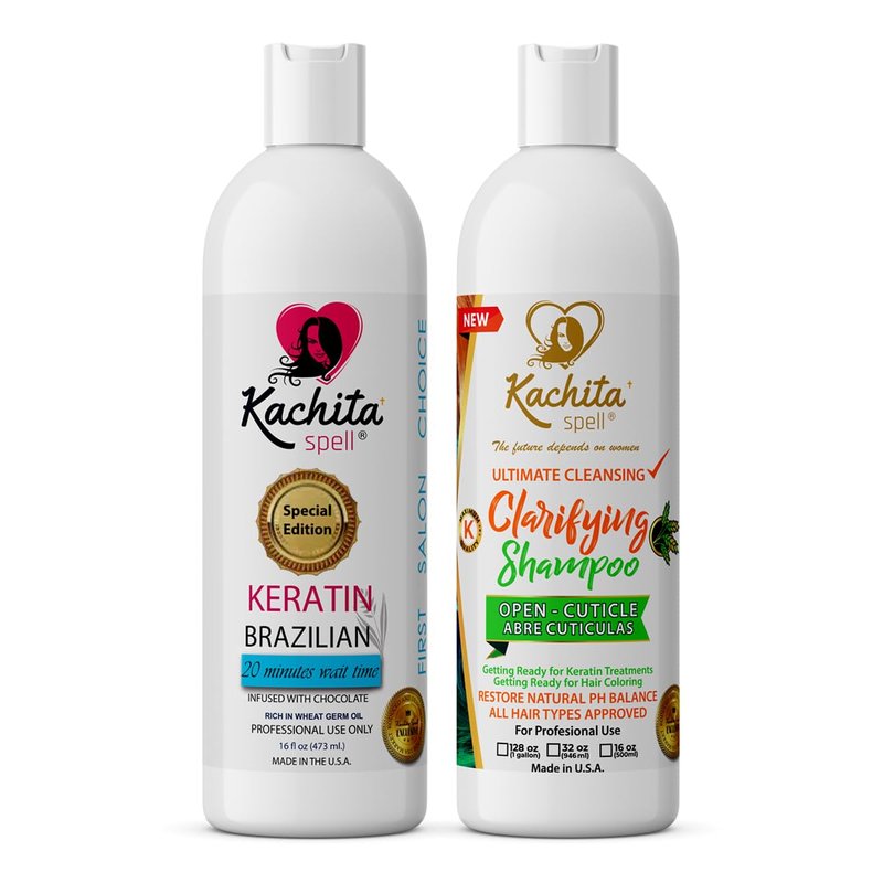 Brazilian Keratin Hair Blowout Treatment Kachita Spell Professional Results Straighten and Smooth Hair + Shampoo Clarify