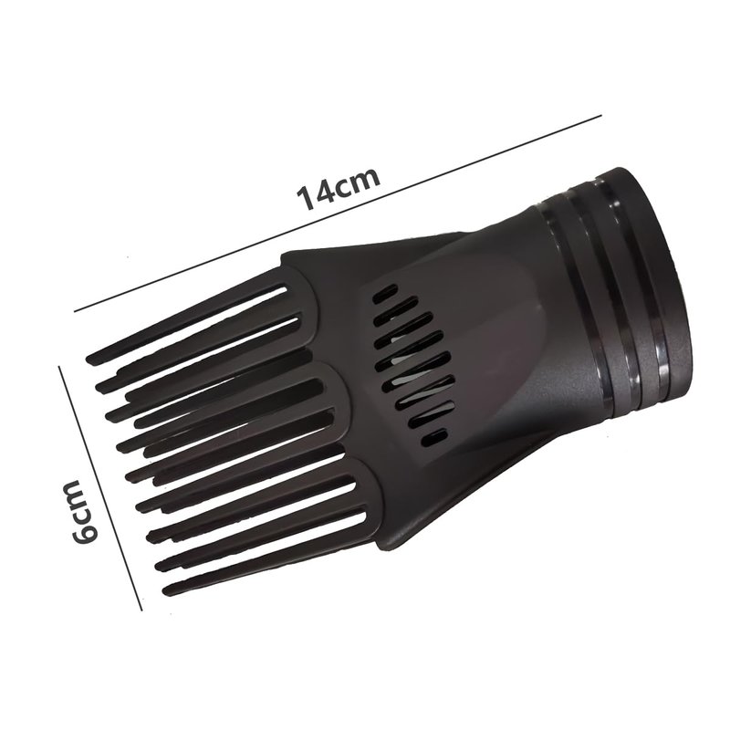 Experience versatile and effective hair styling with our Universal Blow Dryer Comb Attachment, designed to elevate your hair care routine. Achieve a secure fit with most blow dryers featuring a nozzle size of  4.4cm-4.6cm. The base of the attachment is designed to stretch and snugly hug your blow dryer, making it easy to push down and secure in place. Crafted from heavy-duty materials, this comb attachment is built to last, offering heat resistance and durability without the frustration of breaking or bending teeth. The innovative dual teeth design in black concentrates air flow, efficiently detangling and straightening your hair in 1 step. The additional set of teeth at the base ensures that your hair is combed twice with each pass, leaving you with super smooth and straightened hair. This comb attachment is not limited to specific hair types. While it works great for maintaining straight hair, it is also an excellent helper for individuals with curly or natural black hair, assisting in straightening hair and providing a versatile solution for different hair textures. Please note that blow dryers over 2000W with AC fans motor, DC motor, or on high settings are not recommended for use with this diffuser. For optimal results, it is advised to use the comb attachment on low heat and low-speed settings initially. Our Universal Blow Dryer Comb Attachment comes with great compatibility, sturdiness, dual teeth design, versatile applications, and an important note to ensure you achieve the ideal hairstyle every time. Elevate your hair care routine with this essential styling tool.