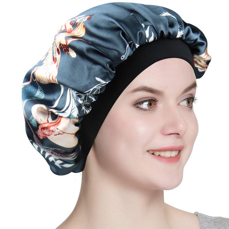 - DOUBLE-LAYERED SILKY SATIN. Reversible and Versatile. This night cap reduces friction unlike previous single-layered satin cap having rough lining without satin lined.Two options for you.You can wear fashionable printed satin inside or simple dyed satin inside.Both layers are silky satin fabric.This product can be worn not only during sleep,but also for makeup, bathing,or even doing the housework.It is really convenient in daily use.