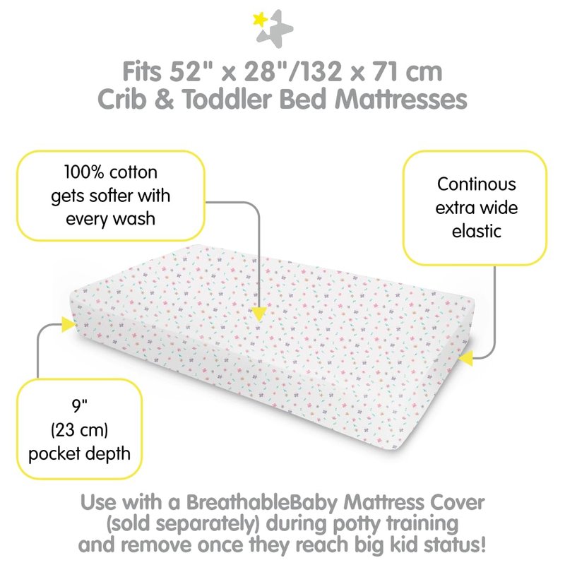 - EXTRA DURABLE & LONG-LASTING: 200 thread count makes these sheets extra durable to last through the toddler stage. Use with a BreathableBaby Mattress Cover (sold separately) during potty training!