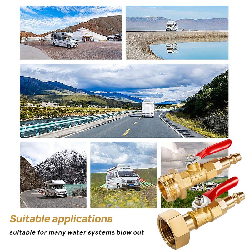 - ★ Widely Application :On one hand, suitable for most water system - RV boat camper travel trailer such vehicles which with water supply system. On the other hand, use to blow out/winterize any water system with an male garden hose thread, like garden hose, faucets, sprinkler systems and outdoor water lines.