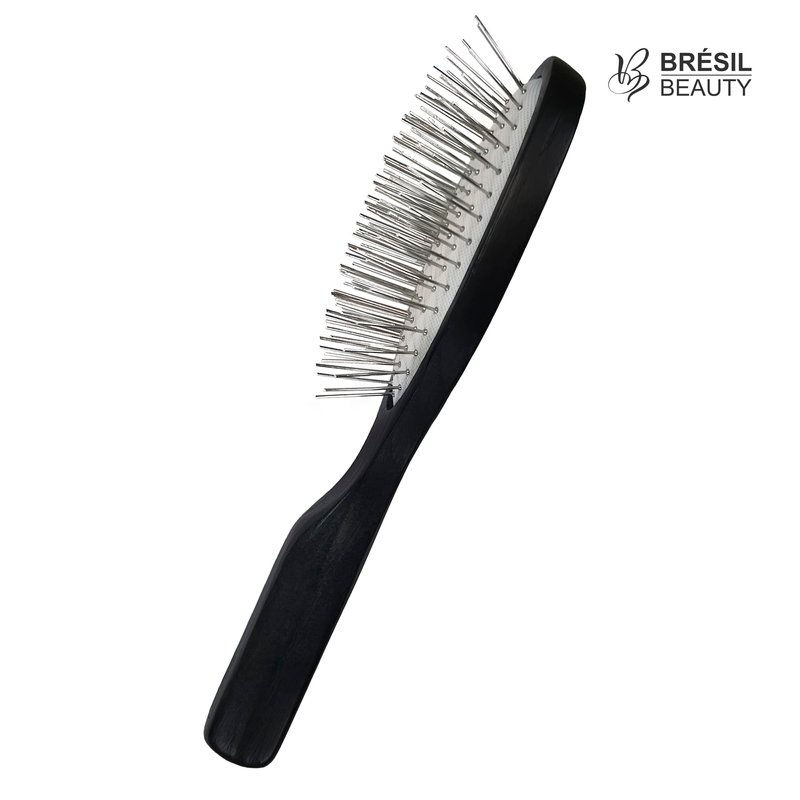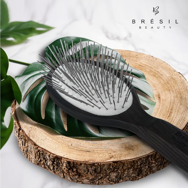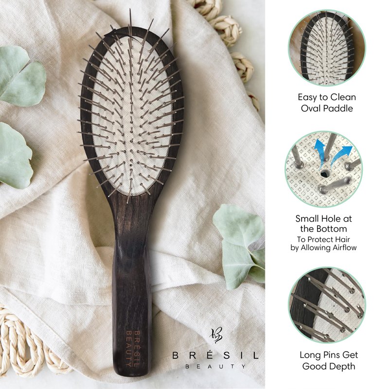 Discover the ultimate hair care tool with the BRESIL BEAUTY ASH WOOD PADDLE BRUSH, expertly designed for women seeking the best in hair grooming. This advanced metal pin hairbrush surpasses traditional boar bristle brushes in performance, delivering gentle yet effective detangling for all hair types—whether thick, fine, curly, or straight. Its long therapeutic metal pins glide effortlessly through both dry and wet hair, eliminating tangles without causing breakage. Experience unparalleled detangling efficiency with this premium hairbrush for women. The ash wood handle offers a luxurious feel while providing sturdy control, making it a reliable companion for daily hair care routines. The BRESIL BEAUTY PADDLE BRUSH is particularly beneficial for those with thick or curly hair, ensuring smooth, silky strands and a polished finish after every use. Its versatility extends to various hair care needs, acting as a detangler brush for thick hair, a smooth brush for thin hair, and a reliable hairbrush for all textures. Elevate your hair care regimen with the BRESIL BEAUTY ASH WOOD PADDLE BRUSH. Perfect for dry or wet hair, this detangling phenomenon improves hair health and enhances shine, making it a must-have for anyone in pursuit of beautiful, manageable locks. Embrace a new standard of hair care with this superior hairbrush and enjoy the difference it brings to your daily grooming routine. Decrease in frizz and breakage, hair growth, scalp stimulation and your natural oils being used to condition your hair.