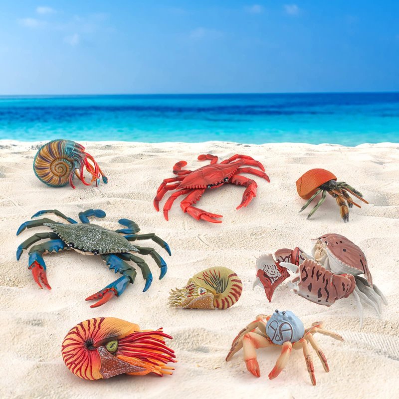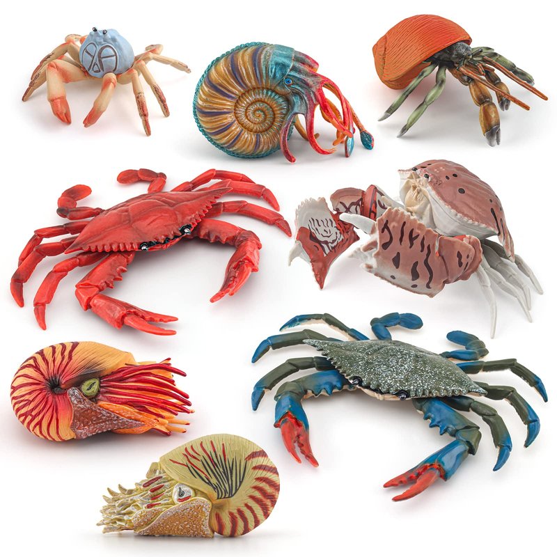 - WHAT YOU GET - 8PCS Jumbo Nautilus and Crab Toy Playset,including 5PCS Crab figures,and 3PCS Nautilus figure.