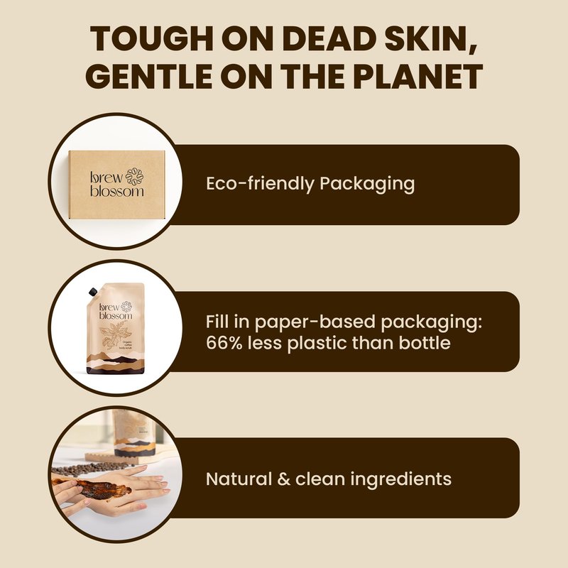 - SAFE FOR ALL SKINS: Organic Coffee Body Scrub by Brew Blossom is suitable to exfoliate all skin types.