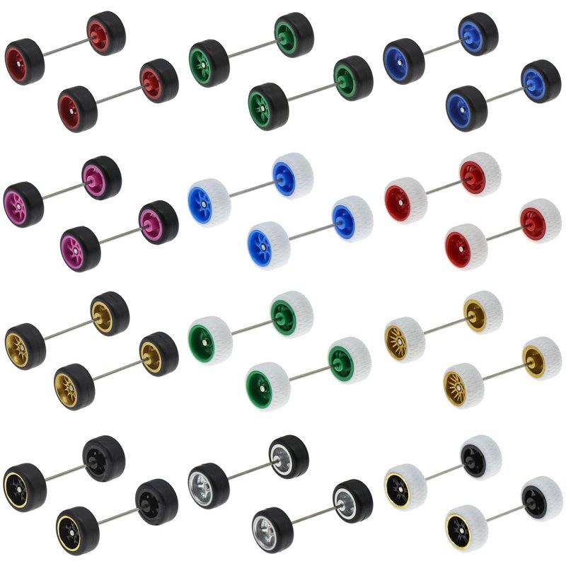 BrickBounty 1/64 Wheels & Tires for 1/64 Scale Cars (10 Sets Packaging), Random Color Rims Tires Set for 1/64 Scale Toy Cars