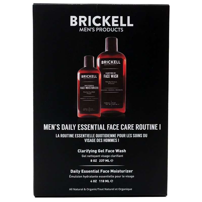 Brickell Men's Daily Essential Face Care Routine I, Gel Facial Cleanser Wash and Face Moisturizer Lotion, Men's Skincare Gift Set Natural and Organic, Scented