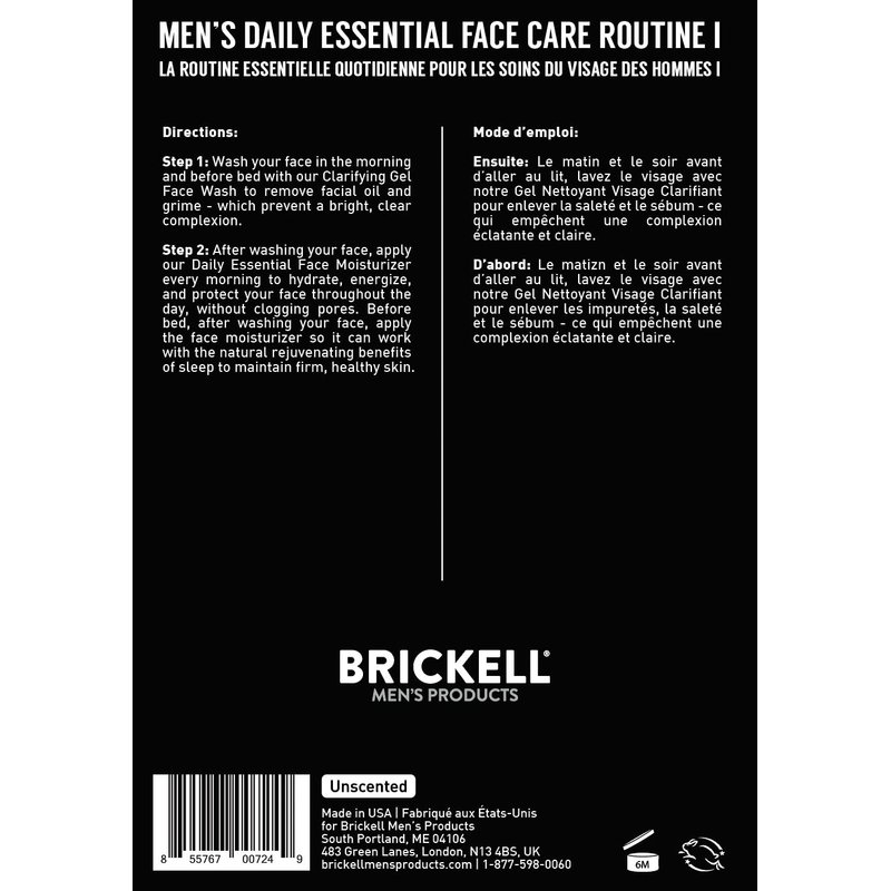 Brickell Men's Daily Essential Face Care Routine I, Gel Facial Cleanser Wash and Face Moisturizer Lotion, Natural and Organic, Unscented, Skincare Gift Set