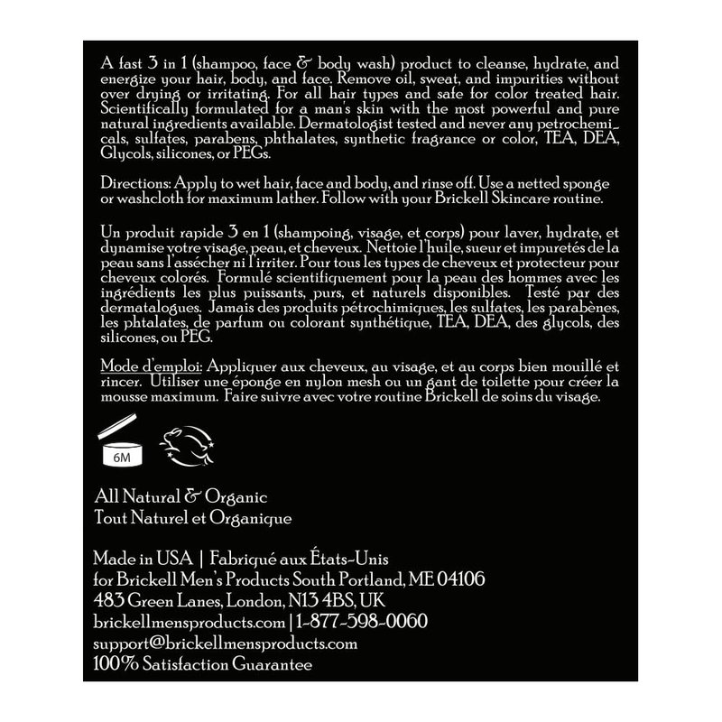 Brickell Men's Rapid Wash, Natural and Organic 3 in 1 Body Wash Gel for Men, 16 Ounce, Evergreen Scent