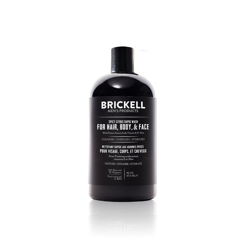 Brickell Men's Rapid Wash, Natural and Organic 3 in 1 Body Wash Gel for Men, 16 Ounce, Spicy Citrus Scent