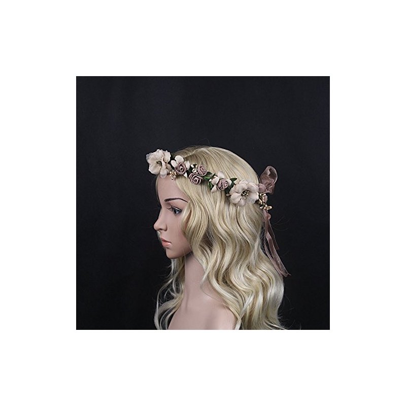 Bridal Flower Garland Artfen Headband Flower Crown Hair Wreath Halo Adjustable Ribbon Wedding Festivals Red Bean Paste