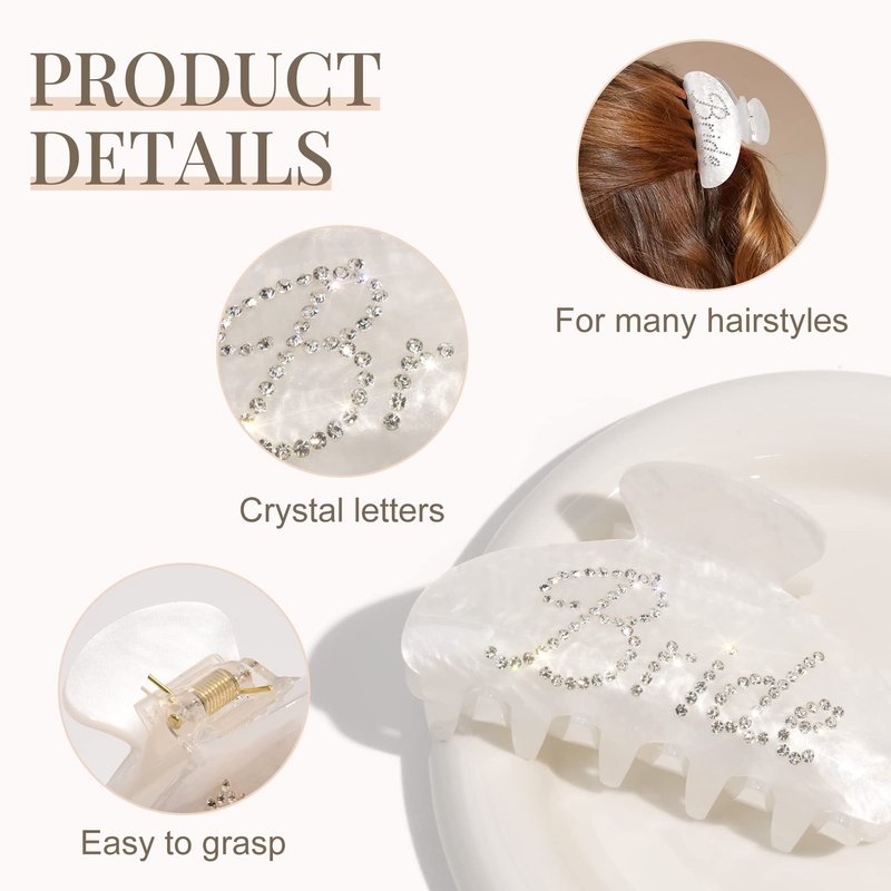 Bride Claw Hair Clip, Aileam White Acrylic Hair Clip Banana Barrettes, Rhinestone Bride Logo, Bachelorette Party Decorations Bridesmaid Gift Shower Wedding