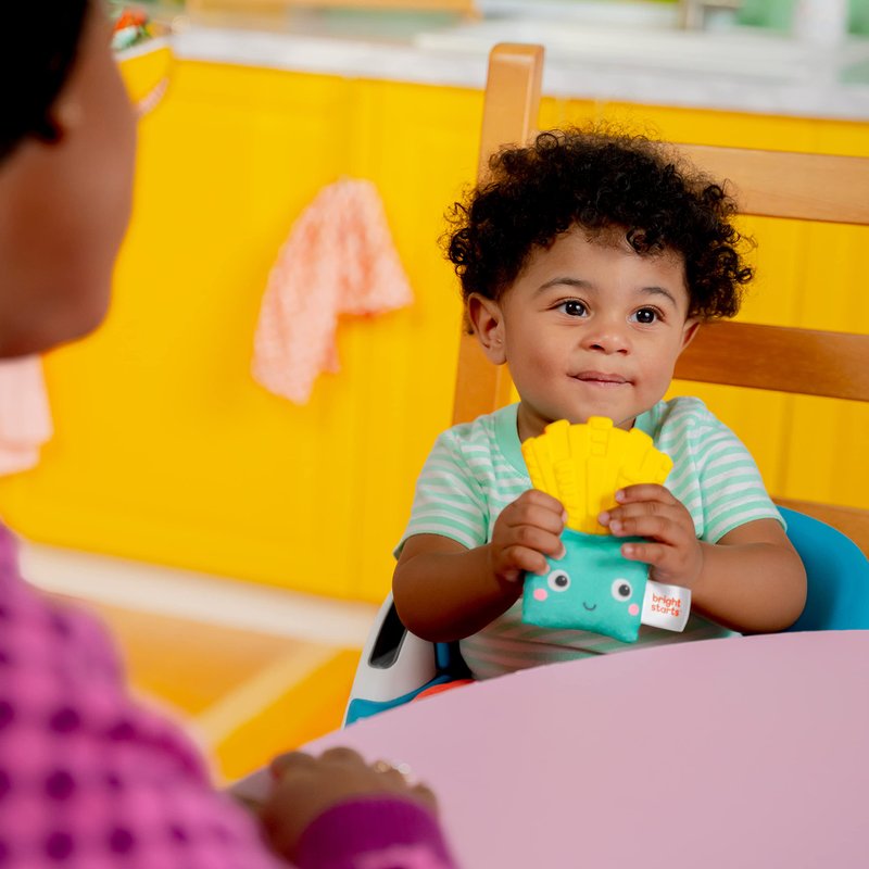 Bright Starts Side of Smiles French Fry Teether Toy with Crinkle Textures, Baby Teething Toy, BPA Free, Unisex, 3 Months+