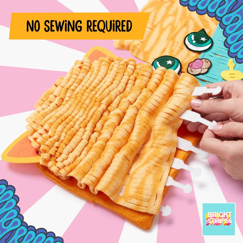 Bright Stripes Magic Scrunch Pillow Making Kit - No Sew Pillow Craft Kit for Kids - Make Your Own Pillow Kit - DIY Pillow Kit for Kids (Kitty)