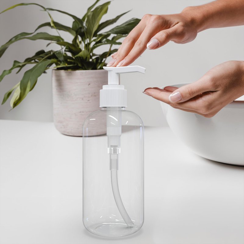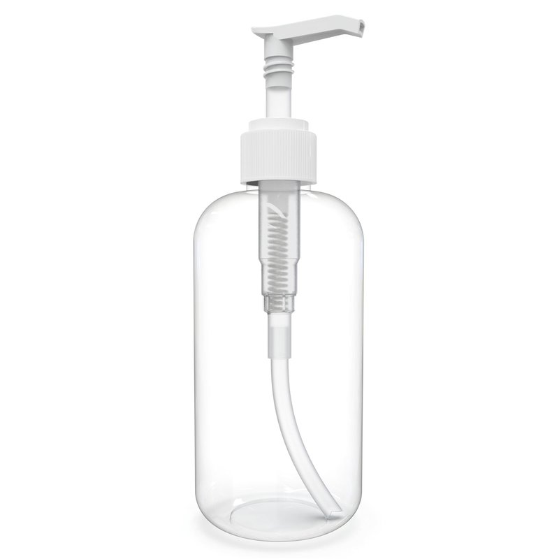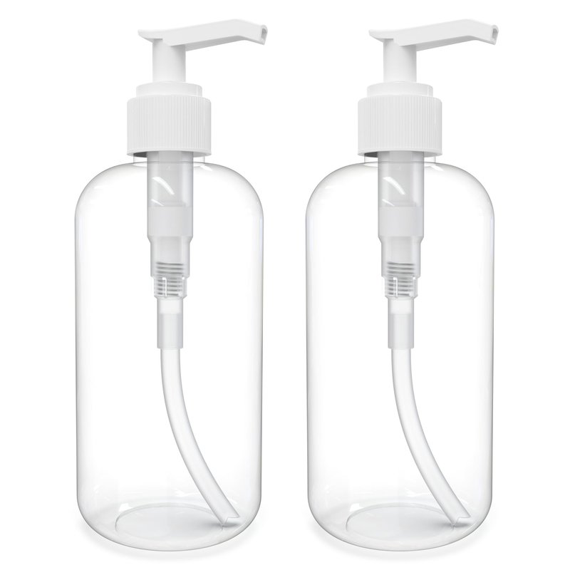 Lotion pump dispenser bottles, empty 8 ounce. Boston Round, Crystal Clear PET Plastic, BPA FREE - Great for Shampoo, Liquid Castile Soap, Body Wash, Shower Gel, Massage Oil, Hand Lotion, Self Tanning. Refillable and Reusable. Have a comfortable size and is easy to hold. Just fill and use!