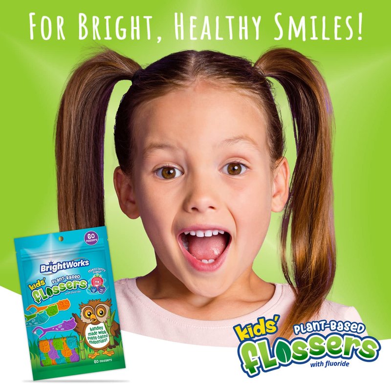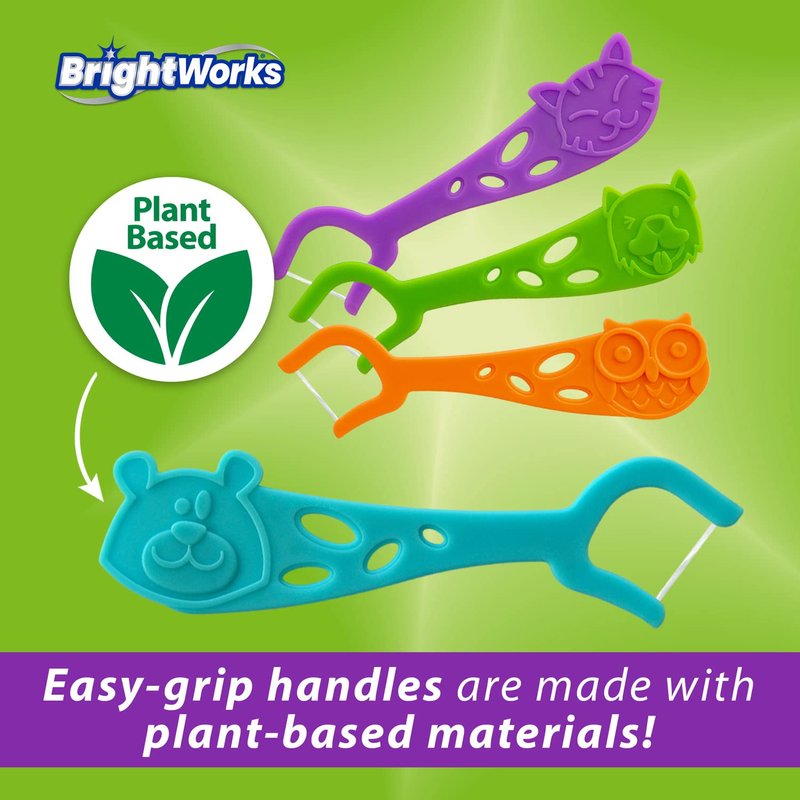 BrightWorks Kids’ Mixed Berry Dental Flossers [180 Floss Picks], Plant-Based Handles, Colorful Animals add Fun to Support Healthy Habits, Easy-Grip Handle, Fluoride-Coated Floss. 60 Count (Pack of 3)