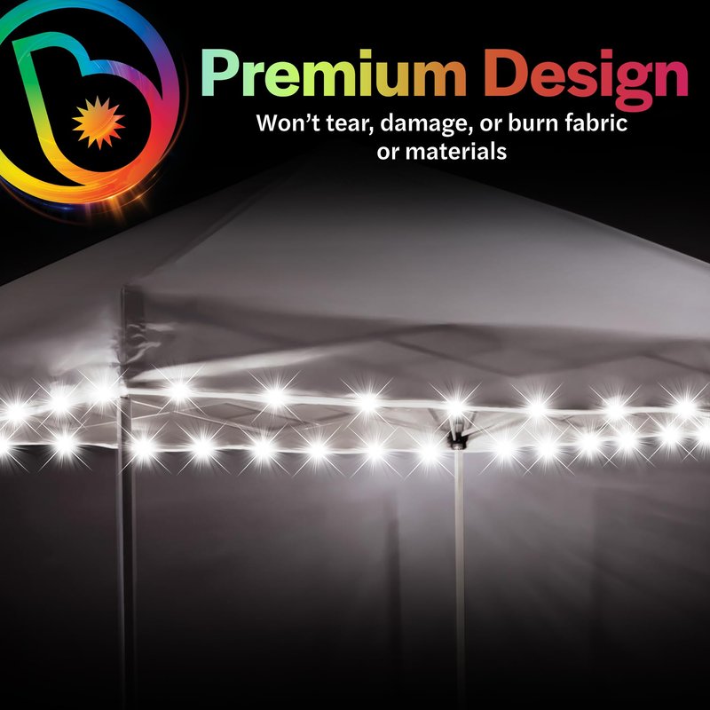Brightz CanopyBrightz LED Canopy Lights, White - Outdoor Canopy Tent Lights for 10ft x 10ft Tents - Instant Pop Up Canopy Lights - 40 ft String Light