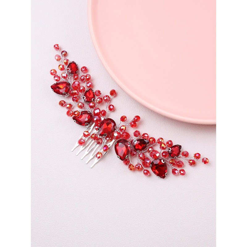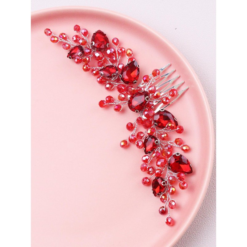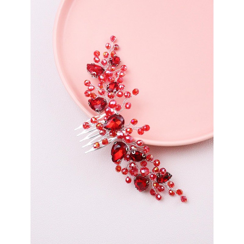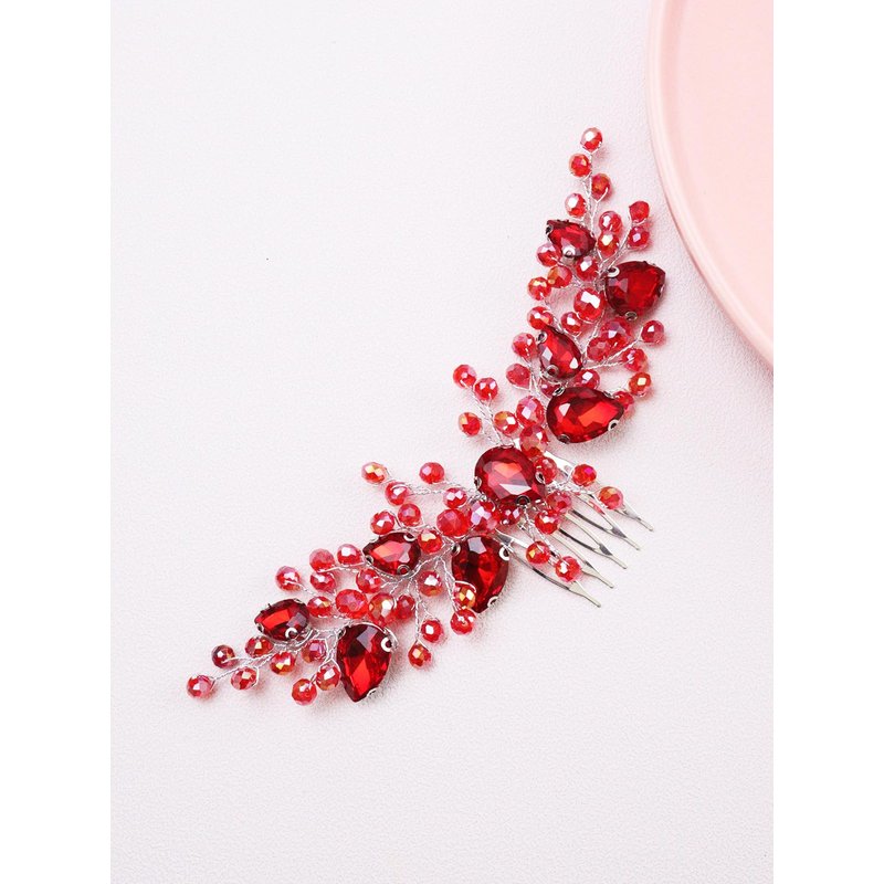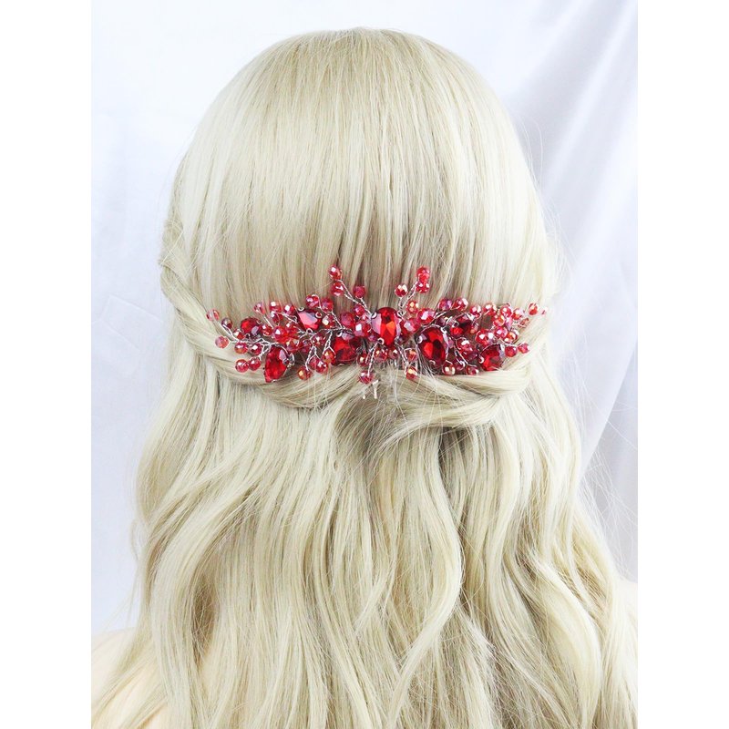 - 【Size and Color】Bridal hair comb Size:7''×2.4''(18×6cm), Green/Red/Silver/Blue/Black(1PCS)